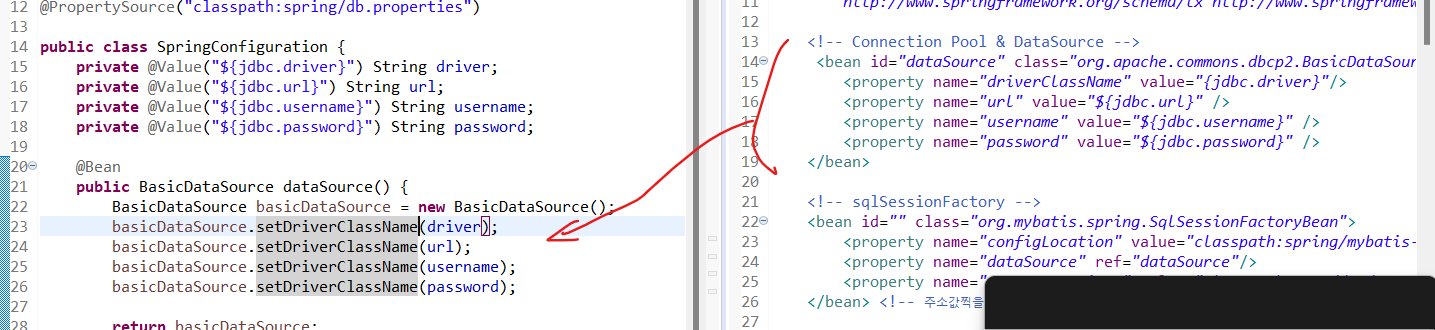 --> xml 사용하지 않았다면 아래 코드에 직접 변수 초기값을 설정하였을 것이다.