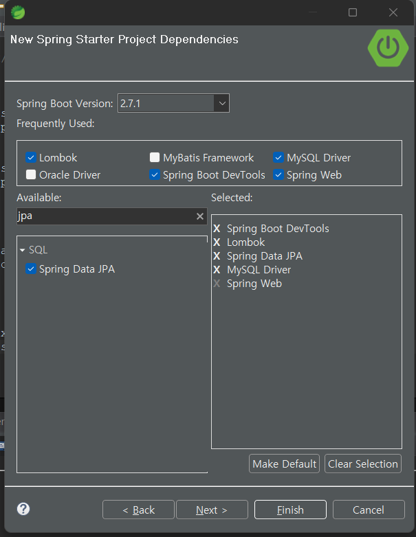 아직 DTO에 데이터 입력값이 없기 때문에 예제에서 실제로 Bean이 생성되었고 데이터가 실제로 저장되었음을 보여줄 내용이 없다. 하지만 아래 sungjuk project에서는 확인이 가능하다.